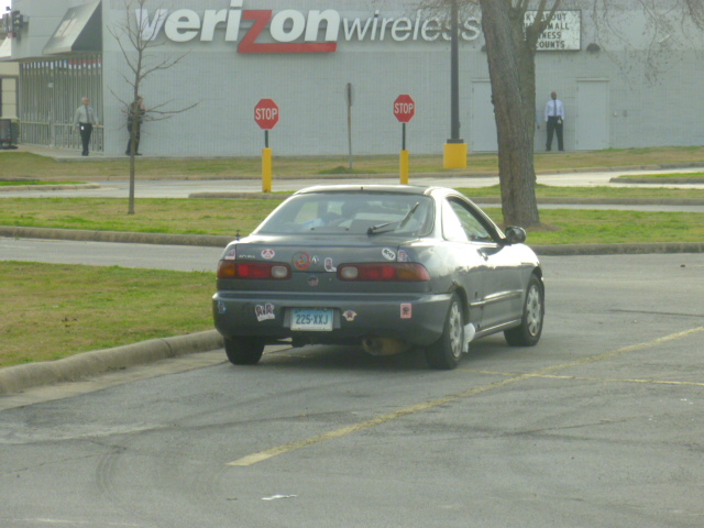 | You can see the bag of poop falling off the rear tire... where they put it hours earlier. There ARE numerous trash cans in walmart parking lots. |